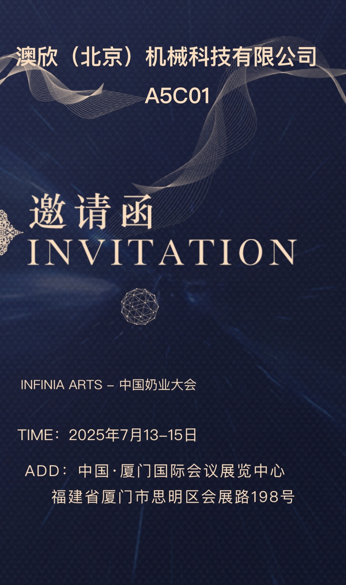澳欣(北京)機械科技有限公司一直致力于為奶業(yè)提供先進(jìn)的機械設(shè)備與技術(shù)解決方案,推動奶業(yè)的智能化、無人化、高效化發(fā)展。此次展會,我們將攜眾多創(chuàng)新產(chǎn)品與技術(shù)亮相,全方位展示公司在奶業(yè)機械領(lǐng)域的研發(fā)成果與實力,為您帶來全新的行業(yè)體驗。我們的展位號是A5C01,誠邀您蒞臨展位,與我們面對面交流,共商合作,共謀發(fā)展大計,一同探討奶業(yè)發(fā)展新方向,攜手共創(chuàng)奶業(yè)新輝煌 !